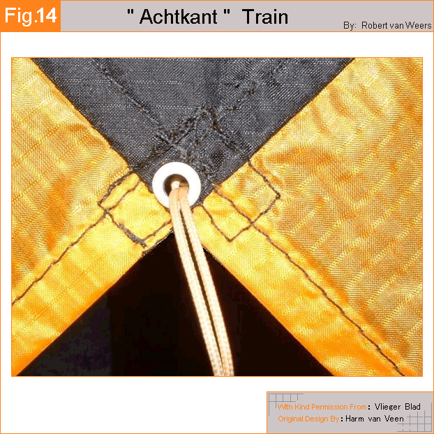 Take a look at the next image to see where the eyelet is placed and just what it's application is. The view is from the front of the kite, so the good side of the eyelet is showing.