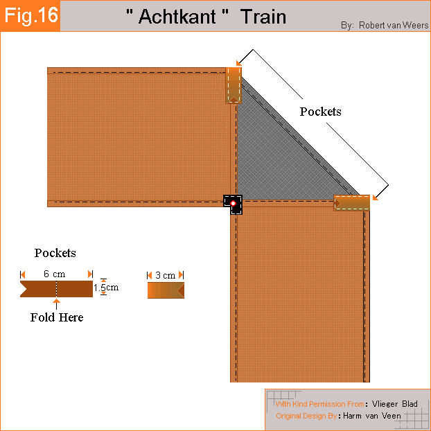 In Fig 4 you can see the position of the ring that holds the two spars together, we will deal with this in the next stage so no need to place them on just yet.In stronger winds, the bottom kite, can be spared with 3 mm all round.