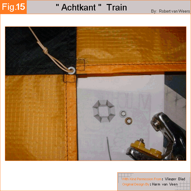 Take a look at the next image to see where the eyelet is placed and just what it's application is. The view is from the front of the kite, so the good side of the eyelet is showing.