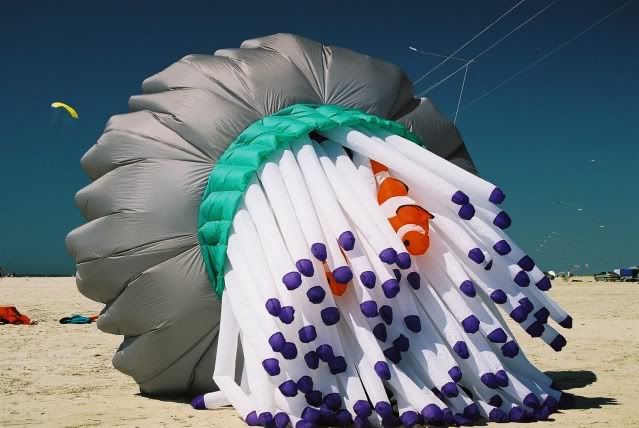 I wanted something a little different this time to take to Fanø 2007 for the fish meeting. I saw a picture of a clown fish within an anemone and wondered how I could implement this on a kite.